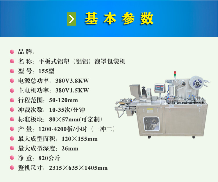 155自動鋁塑午夜成人性视频係列,參照國外先進技術改進完善,可替代進口設備。實行鋁塑複合密封包裝,具有延長保持期,美化商品之優點,並可降低包裝成本。由於該機占地少、投資低、多功能使用、效率高、無汙染、低噪音是一種實施淨化車間和醫院試劑室理想的包裝設備。